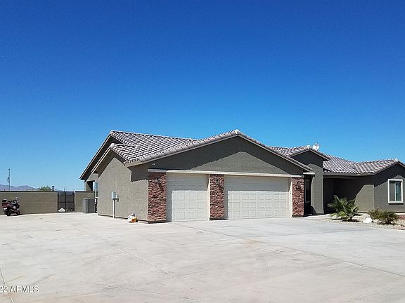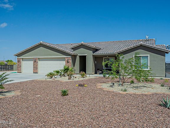 Beautiful, open concept, no HOA home on almost an acre lot includes 4 beds/2 baths, 9' ceilings, granite counters (kitchen & baths), spacious kitchen island, upgraded 36'' cabinets, water softener, master suite with exit to backyard, laundry w/ utility sink and cabinets, split floor plan, SS appliances, and tons of improvements to the property. Paved 20'x86' RV parking with full hookups, large back patio with an additional 10'x71' concrete extension, block wall w/ lights around perimeter of property w/ another block wall separating the work/hobby/storage yard. Conex storage unit with electric and water. Nicely landscaped front and side yards. Three gates with access to back and storage yards. BRING YOUR RV'S, TOYS, HORSES and enjoy this marvelous property!!