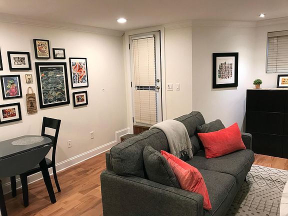 Large charming 1 bed, 1 bath English basement unit (8' ceilings) located less than a block off the diverse and vibrant U St. Corridor. Fully furnished with utilities included. Has a well stocked kitchen, dishwasher, washer and dryer in unit, and jacuzzi tub in bathroom. Large closet in bedroom is outfitted with Elfa storage system. Bathroom is accessible from both the hallway and the bedroom. All linens are provided. All utilities and 1 Gig Fios internet are included in rent. Cable is not provided but the TV in the living room is a Samsung 4K Smart TV with access to Netflix, Hulu, Amazon Prime, etc. if you have an account. Address has a Walk Score of 100 out of 100! For public transit, you're less than a block from the U St. Metro station and many nearby bus routes. Three block walk to Trader Joe's on 14th St., four blocks from the new Florida Ave. Whole Foods, and just down the block from Yes! Organic Market. Dozens of bars and restaurants nearby. Three Capital Bikeshare docks within a two block radius. Open to short or long-term stays. We understand Covid is making times tough on everyone and we are willing to negotiate terms and price should you be interested. We own the building and live above the rental. No pets and no smoking, please.
