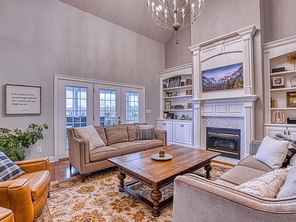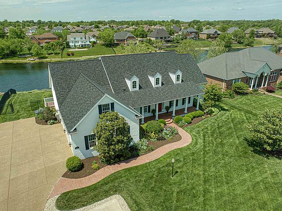 Begin your day in paradise with a wealth of 5-star resort amenities. Immerse yourself in the refreshing hillside pool, explore the pristine waters of Blue Lake by kayak, or take a leisurely bike ride along the scenic Warrick Trails through Friedman Park. Indulge in culinary delights in your custom-designed Fehrenbacher kitchen, equipped with top-of-the-line Wolf and Sub-zero appliances. Savor your morning coffee on the covered veranda, overlooking breathtaking lake views that inspire tranquility and awe. Retreat to the opulence of your spacious primary suite bath, featuring heated floors, a luxurious double shower, two expansive master closets, and an in-suite laundry room. Every detail is meticulously crafted to ensure your comfort and convenience in this extraordinary sanctuary. Come explore the modern luxury and timeless elegance of this exquisite 6-bedroom, 5-bathroom residence spanning nearly 7,000 square feet, perched on the hillside overlooking Blue Lake. Upon entry, guests are greeted by soaring 18-foot ceilings and 3-piece custom crown molding, setting a tone of elegance and warmth. In addition to the primary suite two additional bedrooms and baths complete the main level, one of which functions as a mother-in-law or guest suite. Ascending to the upper level, hardwood floors guide you to two lake-view bedrooms with walk-in closets, sharing a Jack and Jill bathroom with separate vanities. Two additional bonus rooms, currently used as bedrooms, surround a generous common area, ideal for relaxation or leisurely reading. The lower level is an entertainer's delight, featuring a 42 x 21 rec room with a remote gas log fireplace, bar, and a full kitchen with Fehrenbacher cabinets and stainless appliances. A game room, laundry room, multiple storage areas, and a large storage/workshop/workout area with outside access provide ample space for all pursuits. An additional lake view bedroom and full bathroom complete the walkout lower level. Outdoor amenities include a low-maintenance heated saltwater pool with autocover and fountains, a sprawling covered porch with a built-in natural gas grill, and an oversized swing overlooking the lake and private dock for boating, fishing or swimming. A three-car garage, water softener, two new water heaters, and two Geo-Thermal HVAC units ensure convenience and efficiency. The property is served by a zero-cost lake-fed irrigation system, completing this exceptional lakeside retreat.