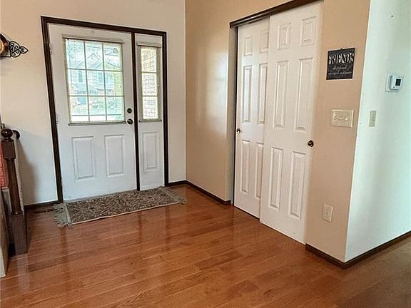 - Features: Floor Covering: Wood, Wall Covering: Some