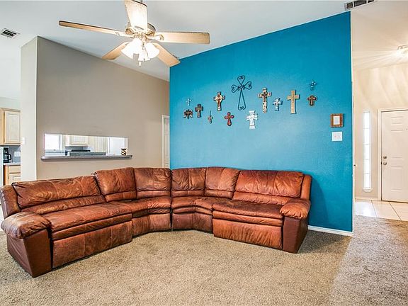 **Seller has verbally accepted an offer.** Great starter home in Sanger with open living area. Master bedroom split from other bedrooms. Separate utility room with shelving. Good size yard with open patio and storage shed.