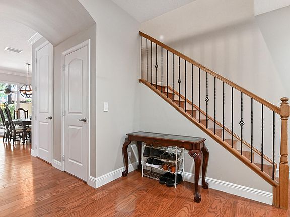 Come live in this beautifully remodeled, spacious, two story townhome w/ impact windows. Custom kitchen w/ Quartzite counters, professional grade stove/oven, matching convection microwave, dual sinks, under cabinet lighting and 42'' cabinets. Crown molding and hardwood floors on lower level with laminate wood adorning the staircase. All bedrooms are nicely sized. Oversized primary w/ two massive walk in closets and tray ceiling. Plenty of storage with cabinetry in the garage. AC done in 2023! Landscaped backyard with private extended patio. Upstairs laundry room with wash basin and front loading washer/dryer. Centrally located close to the Turnpike, I-95, Downtown, Cityplace, airport and the beach. HOA covers insurance, exterior maintenance, clubhouse with game room and heated pool.