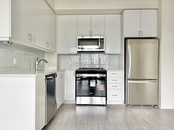 Enjoy bright, unobstructed southwest views from this stunning new unit featuring 9' ceilings and laminate flooring throughout. The open-concept layout includes one bedroom plus a spacious den that can easily serve as a second bedroom. Floor-to-ceiling windows fill the space with natural light. The modern kitchen showcases stainless steel appliances, quartz countertops, and a stylish backsplash.Ideally located just steps from the TTC bus stop with quick access to Highway 401, and only minutes to Kennedy Commons (supermarket, shops, restaurants, banks, and more), the GO Station, Scarborough Town Centre, and the University of Toronto Scarborough Campus.Luxury amenities include a Kids Zone, Chill-Out Lounge, Music Rooms, Yoga Studio, Guest Suites, Gym, Party Room, Concierge, Visitor Parking, and much more. A must-see!