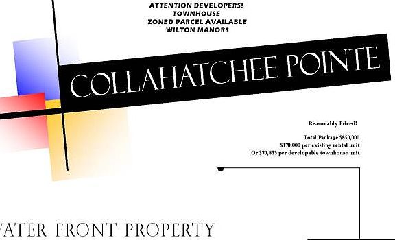 This is a cash cow property with huge long term potential as Development special, buy now as an income property and hold for future sale to developer or build out to 12 units. Can sell as townhouses or keep for an apartment complex as you wish. The property is waterfront Wilton Manors this is a great area for renting and resale value! 08/02/16