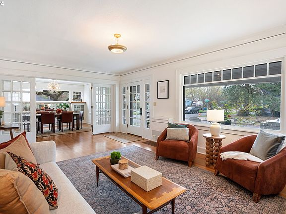 Multi gen magic and memories await at your new Rose City Park manor. Linger on the veranda with space for porch hangs for your whole crew. Watch the littles make chalk art while you enjoy the scene. Pass through the elegant divided light glass front door, flanked by sidelights into airy open space. Host holidays at your place - you've got a party perfect living room; sit down to dinner or brunch with plenty of elbowroom for friends and family to gather. Filtered sunlight dances through the panoply of windows looking out into trees. This grand dame retains the charm of yesteryear, with her brick front wood burning fireplace, built-in glass door cabinets and buffet, multiple sets of French doors, magnificent oak and fir floors, picture molding, classic clawfoot tub, two ornamental bedroom fireplaces and 5-paneled doors. Endowed with coveted features, including a colossal main floor primary bedroom, central flex room that opens out to the deck, main floor laundry and three bedrooms tucked upstairs together. You'll appreciate the abundance of storage and closet space. The roomy kitchen features double wall ovens, a separate cooktop and a homey breakfast nook. Offering rare versatility, generous convertible quarters connect the main house to the tricked out, sleek, permitted inlaw apartment with a private entrance ~ a luxe lair! Year round comfort throughout with a high efficiency mini split heating and air conditioning system. Ask to see the building plans for the completed basement construction and the vision for potential future upgrades. On a corner lot, featuring a modern 2-car garage with a new driveway, fenced backyard, elevated deck and 99 BikeScore! Enjoy speedy trips everywhere you want to go: zip down Sandy and be downtown in 10 minutes, easy access to 3 MAX lines, I-84, Hollywood and Beaumont Village, and Fido favorite, Normandale Park. [Home Energy Score = 4. HES Report at https://rpt.greenbuildingregistry.com/hes/OR10215250]