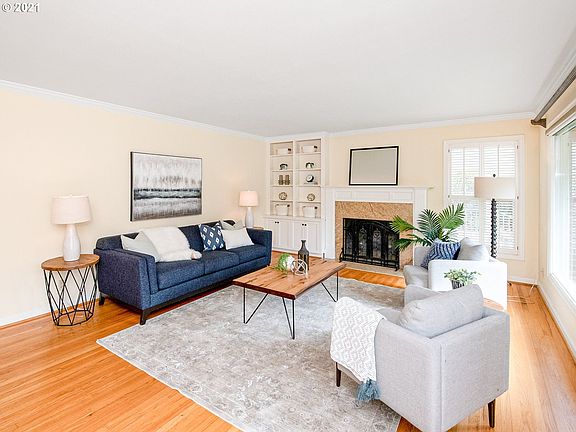 Charming Alameda traditional filled with light! Open floor plan, large picture windows ,hardwoods,2 fireplaces. Updated kitchen with eating bar leads to gorgeous manicured yard w/mahogany deck, landscape lighting front and back. Spacious primary bedroom with built ins,walk in closet. Main floor bedroom with murphy bed. Lower level family room w/Tiki Bar, fireplace, large laundry room plus bonus space in attached garage.Lovingly updated and meticulously maintained. Fantastic location and schools! [Home Energy Score = 2. HES Report at https://rpt.greenbuildingregistry.com/hes/OR10195854]