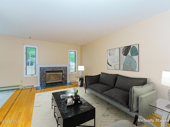 Bright and spacious end unit townhouse in highly desired Guilderland Schools with attached garage! 2 bedroom, 2 full bath plus bonus loft which could be 3rd bedroom, office or family room. Full, finished, walkout basement provides an extra 400 square feet of living space! Perfect for family room, playroom, rec or workout room! Brand new flooring in entryway, kitchen and new carpet upstairs. Tankless hot water heater, Stainless steel appliances in spacious kitchen with perfect dining space with sliders leading out to back patio with privacy fence!