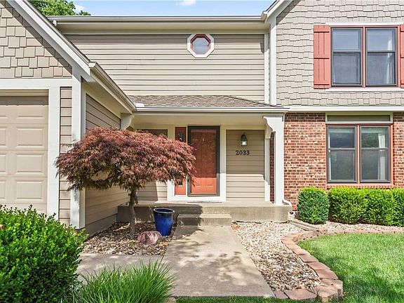 Well Maintained 2 Story Home with Original Owners! Great space with nearly 2700 sq. foot above grade. Enjoy your favorite beverage on the covered front porch. Formal living room could be used as an office. Main level Family Room includes brick fireplace flanked by built-ins! Timeless kitchen is sure to please the family with great space, granite countertops, pantry and stainless steel appliance including gas stove! Formal dining and breakfast nook--perfect for entertaining! Convenient laundry and half bath complete the main level. Head up to the spacious Primary Suite and unwind after a long day. Primary includes sitting area, en-suite bath with separate tub and shower, dual vanity and expandable walk-in closet! 3 more bedrooms and 2nd full bath finish off the 2nd level. Full unfinished daylight basement provides ample storage space or bring your ideas and create more living space! 2 car attached garage has bonus overhead storage! Major updates: Updated low maintenance siding, updated A/C, some new carpet and flooring, and several updated windows and all new storm windows. LOW UTILITY BILLS!! With all of the insulation upgrades the electric "flat rate" is $145/ month. A short walk to the school and park!! Fantastic location just minutes to major highways and ALL KC has to offer! HURRY IN!!