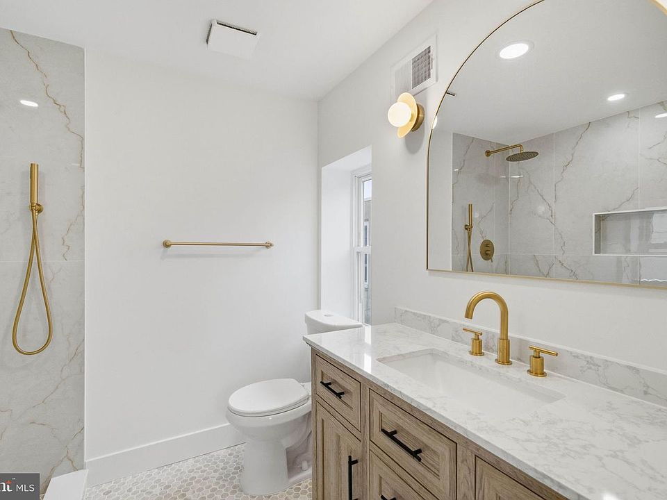 Stunning 2BR/2BA Townhome – Fully Renovated & Move-In Ready! This beautifully updated townhome features a striking gold accent theme that flows throughout—from the statement orb light fixture at entry to coordinating faucets, hardware, and lighting that complement the granite counters and tile veining. The main level offers an open-concept layout with abundant natural light, a modern kitchen, and combined dining/living space. Upstairs you'll find 2 spacious bedrooms, a full bathroom, primary ensuite, in-unit laundry, and generous closet storage. Outside, enjoy a fenced-in rear patio and clean unfinished basement—perfect for entertaining. Recent upgrades include: new roof, hot water heater, HVAC, windows, flooring, electric, plumbing, and appliances. Modern conveniences like a Nest thermostat and Ring doorbell are already installed. Enjoy excellent street parking and easy public transit access. Walk to the community garden and Bok Building's popular spots like Machine Shop, Irwin's, and Bok Bar rooftop. Minutes to Live! Casino & Hotel and sports complexes. Schedule your showing today—this one won't last!