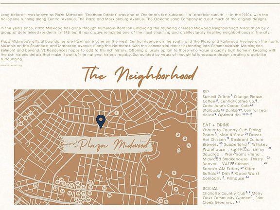 Welcome to The VL Residences, a property of rare gifts and unmistakeable character at the core of Plaza Midwood. Designed to embrace the amenities and landscape of the surrounding estate, this one of a kind new construction development looks to create its own presence while complimenting the history of its surroundings.