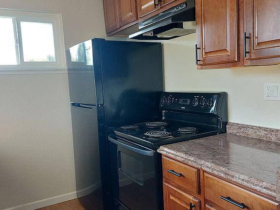 Kitchen is equipped with dishwasher, garbage disposal, and range.