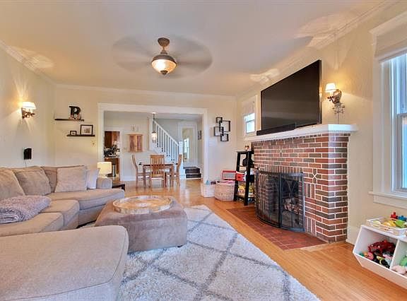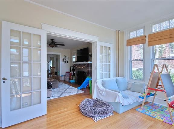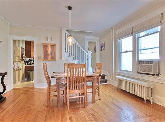 Enter this lovely half-double by the warm inviting sunroom that faces south. All main rooms have the original oak floors with hand-hewn nails. The large living room with a gas fireplace is great for cozy get-togethers and the adjacent dining room is inviting for dinner parties. The kitchen is adjoined by a recently addition of a half bath and mudroom/laundry room leading to a fenced-in backyard with a deck and a one car garage. Upstairs are three good-sized bedrooms and a full bath. This charming house is welcoming and available this summer.