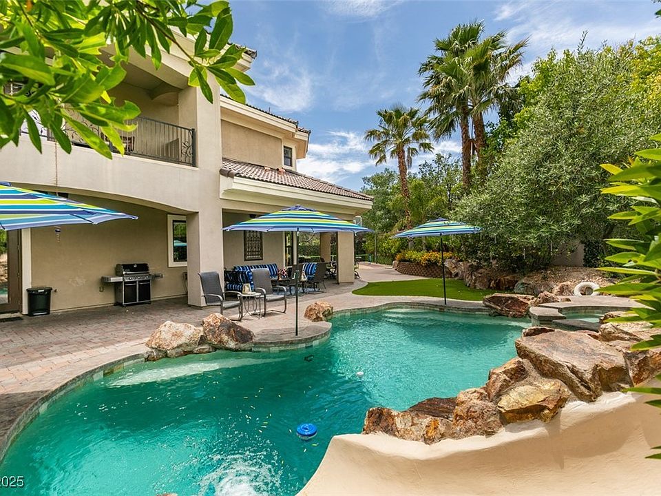 LOCATION LOCATION LOCATION... LIVE IN THE GATED COMMUNITY OF SUMMERLIN VILLAGE. BEAUTIFUL 4 BEDROOM 4.5 BATHROOMS, 3 CAR GARAGE. PRIMARY BEDROOM INCLUDES A BALCONY THAT OVERLOOKS THE SPARKLING POOL, SPA, AND WATERFALL.