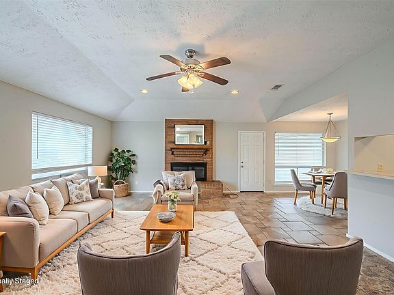 Welcome to this charming 3-bedroom, 2-bathroom home in the established Kenswick neighborhood. With friendly curb appeal and a spacious 2-car garage, this home offers comfort and convenience. Step into a bright living room featuring tile flooring, natural light, and a stunning floor-to-ceiling brick fireplace—perfect for cozy evenings or casual gatherings.