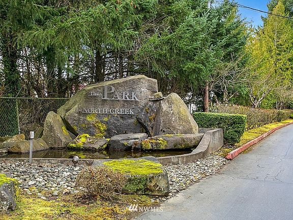 Feel at peace in your new home as you look out from your windows to the wilds of North Creek across vast grassy fields. Why stare at another building? Study birds as they come & go in the snags and brambles. This wonderfully updated home features brand new carpeting, a smart floorplan & great connected spaces. Grab a book next to your fireplace or stay connected to the world w/ shopping, dining, public transportation & freeway access nearby. Minutes to Mill Creek Town Center. The master suite is large w/ double closets. Reserved parking, washer & dryer in unit, a patio & storage. The community features a gym, community center, ball court, beautiful pond, & access to a covered pagoda next to North Creek with trails to the water.