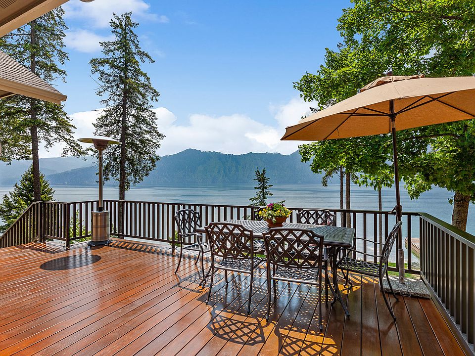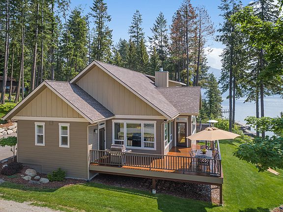 Waterfront home with jaw-dropping Lake Pend Oreille Views! Just shy of an acre, lawn & mature trees line the asphalt driveway approaching the house & lake beyond. The custom home has 3 bedrooms and 2.5 baths, 2826SF, a large living area with stone fireplace, hardwood flooring, & access to the deck. Large windows frame lake & mountain views surround the open dining area. The kitchen with island seating, beautiful granite, a walk-in pantry, is amply sized for cooking & entertaining. Main Lvl Mstr Suite features large windows, a deck, dbl vanity & walk-in shower. A 200+ bottle wine rm, home office & a finished workshop also on the main floor. Upstairs- 2 bdrms & a bath. Great property, call today!