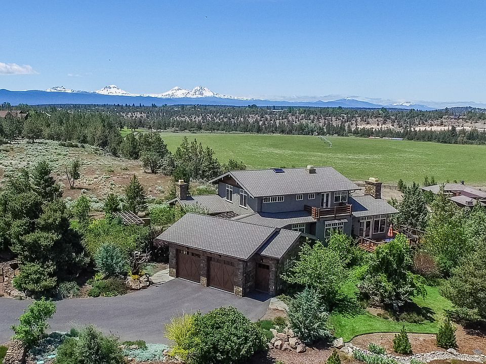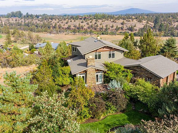 Unobstructed Cascade Mountain, pastoral and river views from an award-winning custom home in Deschutes River Ranch. Situated on .56/acre, 10 minutes from Downtown Bend, this timeless Northwest Contemporary offers privacy, tranquility and unsurpassed craftsmanship throughout: Cedar beamed ceilings, wood wrapped windows and accents, 3 stone fireplaces and multiple outdoor spaces to enjoy. Chef's kitchen features solid surface counters, Wolf range, lg working island and opens to spacious, light-filled family rm overlooking the mountains and pastures. Entertain under the Central Oregon skies on the upper deck or in the formal dining rm w/more stunning views. Main level home office and formal living room. 2nd level: Primary Suite with spa-like bath and private deck + 2 add'l BR and full BA. Daylight basement: 4th BR, full BA and media rm w/access to patio, backyard and kitchenette. Private access to river, trails, fly fishing, swimming hole and 32,000 acres of public land.