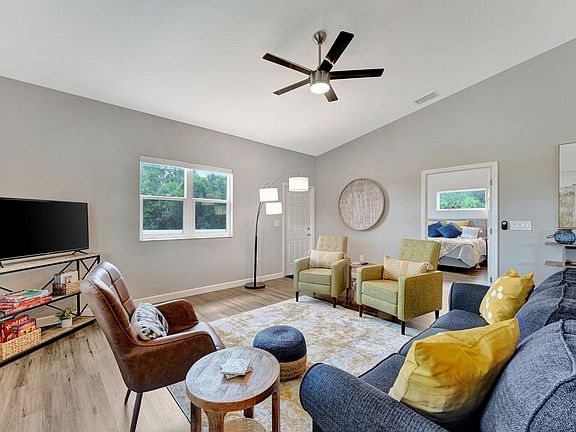 FURNISHED VACATION RENTAL | UTILITIES INCLUDED - AVAILABLE JAN, MAR, APR. PLEASE NOTE: We did lose the fence during the last hurricane. Enjoy the laid-back Florida lifestyle in this beautiful Coastal Cottage. This new construction 2 bedroom 2 bathroom home is centrally located near North Port and Port Charlotte with easy access to the highway, minutes to shopping and dining and less than 30 minutes to multiple stunning Gulf Coast beaches. This furnished vacation rental sleeps 6 comfortably! Each bedroom has an en-suite bathroom for ultimate privacy. The master bedroom features a large king bed, stand up shower with bench and walk-in closet. The guest room features a queen bed along with plenty of storage space and a desk for any last minute work that needs to be done. The bright open living, dining and kitchen are perfect for entertaining under the vaulted ceilings. Fire up the grill in the newly fenced HUGE backyard or relax on the porch under the swaying leaves of the Grand Oak Tree. You'll never get bored here! Manasota Key, Englewood Beach and Venice Beach are 30 minutes from your door. Walk around Historic Downtown Punta Gorda and Fisherman's Village for waterfront dining and shopping. Head 10 minutes south to the amazing Charlotte Harbor and Peace River for amazing on the water activities. We are centrally located whether you're flying in from Punta Gorda, Fort Myers, Sarasota or Tampa! Paradise awaits... Ready to secure your spot? Check out the virtual tour! Monthly rates include all utilities and landscaping. This home comes turnkey - fully furnished and equipped. Just bring your clothes and toothbrush! Additional charges will be a departure cleaning fee, refundable security deposit, application fee and Resort Taxes of 12%. Note that rates are subject to change month to month depending on the season. THIS ONE WON'T LAST LONG! Book your stay today! Fully furnished turnkey vacation rental. Owner pays all utilities including lawn care and pest control.