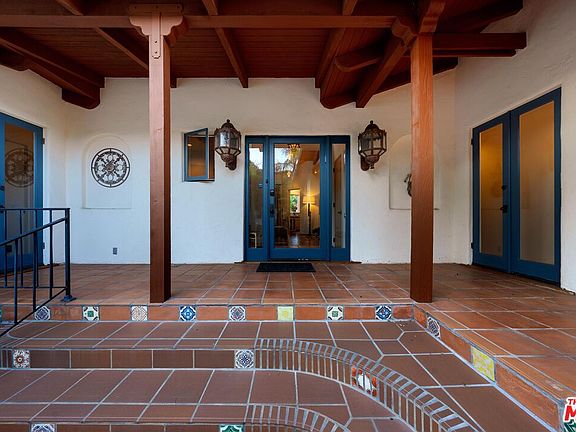 Welcome to Topanga Canyon living at its finest. Just above the clouds and set on its own ridge line, sits a sprawling 14 acre private ranch with two homes. The main home is a beautifully appointed, Spanish Colonial Revival featuring 5 bedrooms and 4 baths, a spacious chef's kitchen, high-pitched beamed ceilings, rich wood floors, cozy fireplaces, artistic tile work throughout, an in-law unit with a kitchenette, central HVAC, and a soaking bathtub in the master suite overlooking the mountains to take it all in. An additional self contained 2 bed/1 bath home, with a full kitchen Ideal as a guest house, creative studio, or a quiet home office. Once home to prominent artists, this space invites a creative atmosphere designed to inspire and delight. Step outside, and experience an abundance of wildlife; deer, rabbits, hawks and owls are frequent sightings. Breathtaking mountain views anywhere you look, and lush gardens bathed in sunlight. Multiple courtyards, patios, decks, sauna, and an outdoor dining area. The property also offers a small barn and horse corrals for the equestrian enthusiast, grassy backyard for kids to frolic, olive tree groves, miles of hiking trails and a dedicated meditation or exercise pavilion perfect for morning mindfulness and movement. With your closest neighbor across a wide valley 800 ft away, it doesn't get any more private or secure. The home feels secluded yet is only a short drive to the vibrant Topanga Canyon Village, known for its eclectic bohemian shops, organic eateries, and lively farmers market. Malibu beaches and Santa Monica are within a short picturesque drive as well.Schedule your private showing today and discover the magic of Topanga- The home is offered partially furnished or unfurnished. Short term leases considered on a case by case basis. Tenant pays for gardener ($700/month).