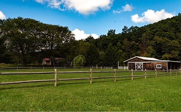 Great country setting for this charming ranch house situated on over 10 acres in beautiful Bradford County PA. The house has a beautiful enclosed living area with a log cabin feel, a gas fireplace and a finished basement with a wet bar, accented by white birch. An attached 1 car garage and a very nice front patio area looks out over an immaculate yard. The barn is a horse lovers dream with 4 stalls and room to grow. A split rail fence corral is in front of the barn and a nice level field could serve as extra pasture or a run in. The adjacent acreage is also level with ample creek frontage.The exterior is an upgraded vinyl siding that looks like cedar shakes.
