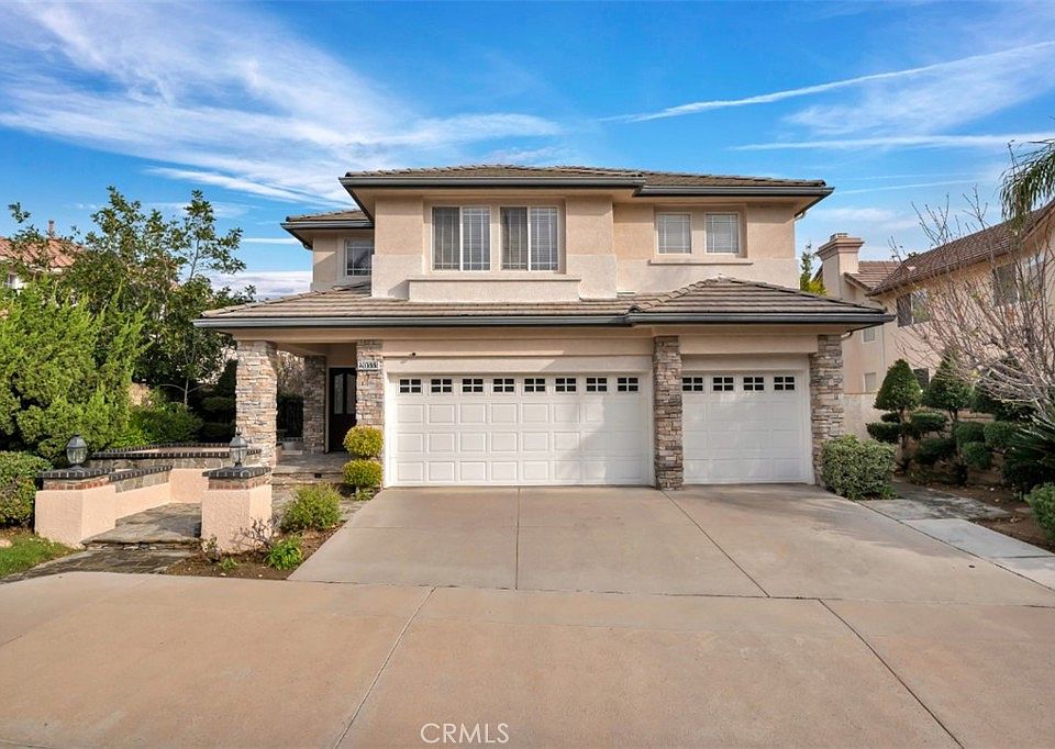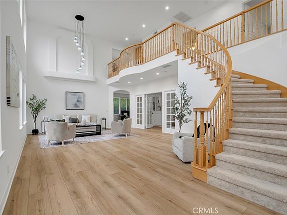 Set within the prestigious, gated Villagio Estates in Porter Ranch, this beautifully maintained two-story 4 bed, 4 bath + den residence offers an exceptional blend of refined living, thoughtful updates, and the security and exclusivity of a controlled-access community. Spanning approximately 3,300 square feet, the home reflects a high level of care and pride of ownership, with attractive architecture, stacked stone accents, and a welcoming formal entry that immediately conveys quality and sophistication. Step into soaring two-story ceilings, abundant natural light from clerestory windows, and striking new lighting fixtures that highlights the openness of the formal living/dining space. Fresh paint, new flooring throughout the house, newly remodeled kitchen, new bathroom fittings, lighting fixtures, door hardware, kitchen appliances and so much more! The home’s thoughtful upgrades and high-end finishes reflect meticulous care and pride of ownership throughout. French doors open to a private office or den with a plantation shuttered passthrough to the adjacent family room, which could be converted to act as an additional bedroom if desired. The inviting informal living space has a cozy, raised-hearth fireplace and seamlessly flows into the stunning kitchen. Beautifully appointed with two tone shaker cabinets, white quartz countertops, marble backsplash, brand-new stainless-steel appliances, and convenient central island. The adjoining, sunny breakfast nook has both breakfast bar seating and room for informal dining surrounded by windows. Upstairs, the generous bedroom layout includes well-sized bedrooms, a full Jack-and-Jill bath, a secondary en-suite bedroom with walk-in closet and ¾ bath, and a spacious primary suite featuring vaulted ceilings, French doors to a private balcony with hillside views, dual walk-in closets, and a luxurious en-suite bath with jacuzzi tub, oversized glass shower, dual sinks, and vanity area. The outdoor space offers a wide patio, built-in BBQ, and a decorative pond with smartphone operated waterfall feature, creating a serene setting for entertaining or quiet evenings. Set within a controlled-access community close to shopping, dining, parks, and top-rated schools, this move-in-ready home delivers generous scale, refined finishes, and the confidence of a residence that has been carefully maintained and tastefully designed for comfort, quality, and long-term enjoyment. Don’t miss this one!