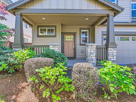 Located in desirable Twin Creeks on Cooper Mountain neighborhood, this charming Craftsman home boasts elegance and modern comforts. Built in 2015, its exterior exudes classic Craftsman appeal with a covered front porch adorned with tapered columns and a gabled roofline. The inviting foyer features engineered hardwood floors that flow seamlessly throughout the main level. The spacious living room is filled with abundant natural light filtering through large windows. Adjacent to the living room is the fabulous gourmet kitchen. The kitchen showcases luxurious granite countertops, complemented by sleek stainless steel appliances and custom cabinetry providing ample storage space. A breakfast bar offers additional seating and serves as a focal point for casual dining and social gatherings. Walk out from the dining area to a charming patio, extending the entertainment space outdoors and allowing for al fresco dining amidst the serene backdrop of the low-maintenance backyard. The spacious master suite is a private oasis, featuring plush carpeting, a walk-in closet, and a luxurious en-suite bathroom with a soaking tub, and a separate shower?a perfect retreat for relaxation and rejuvenation. Three additional bedrooms on the upper level offer flexibility for family members, guests, or home office space, each boasting ample closet space and large windows that bathe the rooms in natural light. A shared full bathroom with modern fixtures and a convenient laundry room complete the second level.