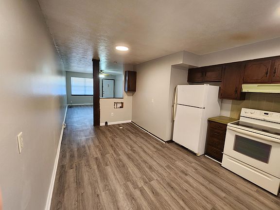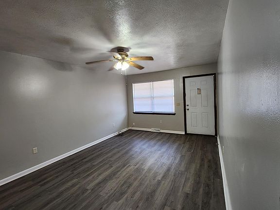 Two bedroom, 1 bath end unit available for lease. New paint. Remodeled bathroom. Refrigerator and stove included. Rent includes water, trash and sewer. Tenant is responsible for gas and electric. One small pet under 35 pounds welcome with additional monthly rent and non-refundable pet deposit.