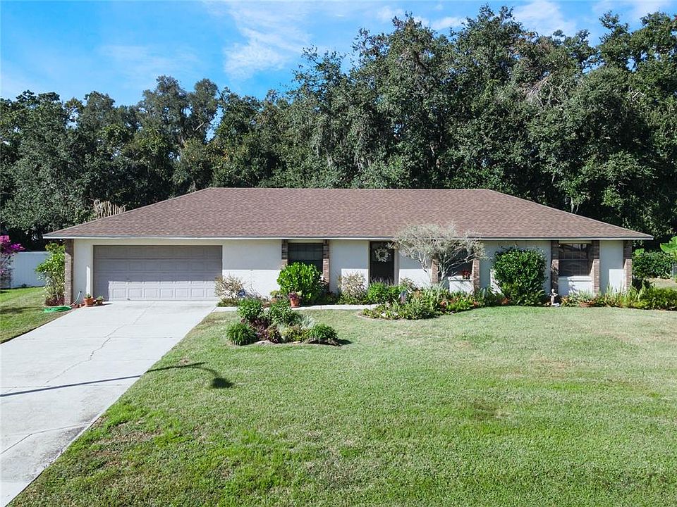Charming 3-Bedroom, 2-Bathroom Home on a Serene 0.47 Acre Lot. Welcome to your dream home! This enchanting 3-bedroom, 2-bathroom home offers a perfect blend of comfort, style, and outdoor tranquility. With a brand-new roof in 2022 and a list of impressive features, this property is a true gem. This spacious 1,569 square foot home provides ample space for both living and entertaining. Three generously sized bedrooms with a split floor plan offers plenty of room for family and guests, each with its own unique charm. Two well-appointed bathrooms ensure convenience and privacy for the entire household. A brand-new roof installed in 2022 guarantees peace of mind and protects your investment. Escape to your very own backyard paradise with an inviting in-ground pool and a screened patio. Perfect for unwinding or hosting poolside gatherings with friends and family. The two-car garage provides secure parking and extra storage space for your convenience. Your .47-acre lot is beautifully landscaped with mature oak trees, creating a peaceful and picturesque setting that is sure to enchant you. Situated in a sought-after area, this property offers a perfect balance of tranquility and accessibility to amenities and services. This home offers an inviting atmosphere that seamlessly combines indoor and outdoor living. Whether you're looking to relax by the pool, enjoy outdoor dining, or simply savor the beauty of your landscaped backyard, this property has it all.