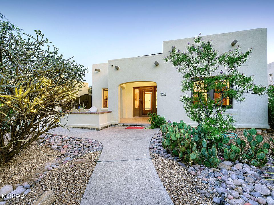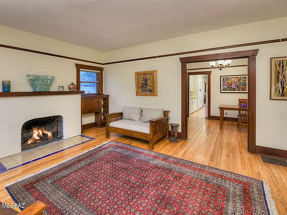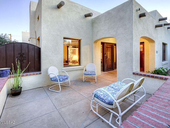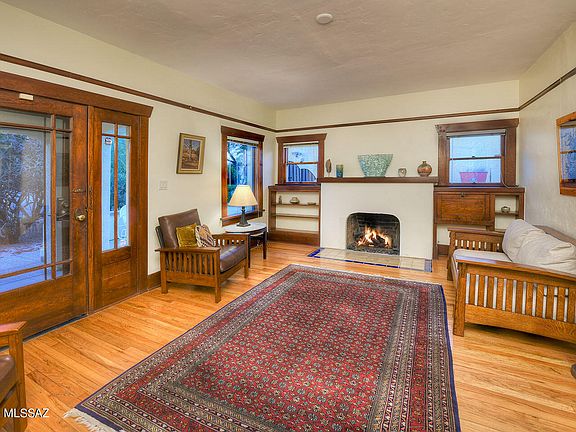 This Sam Hughes 1925 home is a beautiful property located just two blocks from the University of Arizona. It has undergone a gorgeous restoration that preserves its original architectural integrity while incorporating numerous green and modern amenities. Some notable features of the home include Downstairs Master suite or sep GUEST house, white oak hardwood floors, baseboards, trim, and moldings, as well as built-in bookcases, a desk, buffet, phone box, and linen cabinetry. The main floor of the house includes a living room, a formal dining room, two bedrooms, and one bathroom. The kitchen, designed for the avid cook, boasts ample storage space, stainless steel appliances, the original sink & tile, marble countertops. It also features a breakfast bar that opens to the great room.