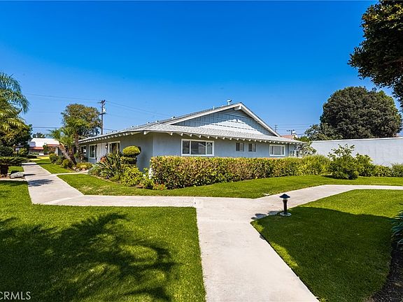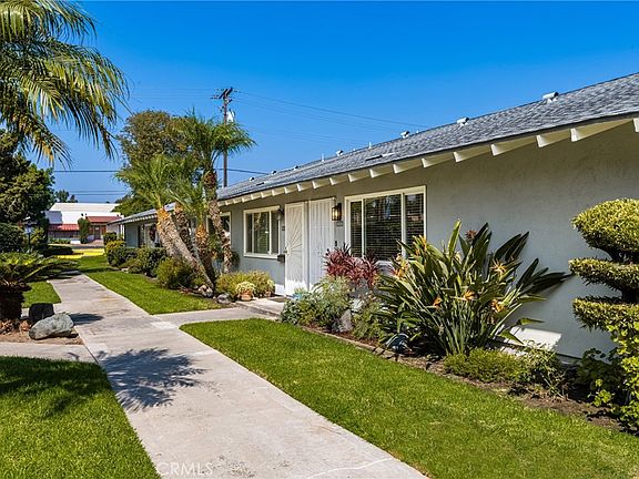Beautifully Remodeled Single-Level Corner Condominium Discover comfort and convenience in this centrally-located and immaculate condominium within the highly regarded Tustin Unified School District. Offering freshly remodeled living space, this bright and spacious home features dual-pane windows, Brand New Hunter Douglas window shades, and a brand-new vinyl dual-pane slider, ensuring energy efficiency and year-round comfort. Both bedrooms include mirrored wardrobe closets, while the large primary bedroom features an en suite bath and direct access to a private back patio—perfect for outdoor relaxation and easy Saturday morning coffee and a good book. The charming brick and concrete patio, landscaped with gorgeous mature Japanese Maple trees provides direct access to two assigned carports for easy parking. Stay comfortable with central air conditioning and enjoy the convenience of a stackable washer and dryer located within the unit, along with additional laundry rooms on the property for your use. The dining room offers a cozy fireplace, while the designer inspired and thoughtfully planned accents in this kitchen give it a contemporary luxury look and is equipped with a large skylight, quartz countertops, a breakfast bar, a stainless steel farmhouse inspired sink and electric appliances. Both bathrooms are also updated with sleek quartz countertops. Brand new vinyl flooring and recessed lighting throughout completes the ambiance of this spectacular home. Community amenities include a sparkling pool, clubhouse, and outdoor barbecue area—ideal for leisure and entertaining. This beautifully updated, light-filled pristine home is move-in ready and combines style, comfort, and modern convenience, all in a prime location close to top schools, shopping, and dining.