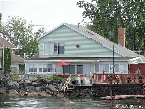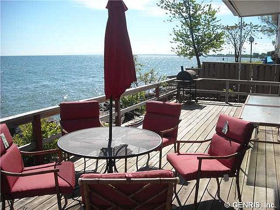 Premier waterfront getaway! Best of both worlds, step into the waters of Lake Ontario; dock your boat on Long Pond channel in calm water out your back door! Entertain in your gourmet kitchen on the lake side with granite countertops, commercial range & built in expresso machine. Very open living room, dining room & kitchen lead to expansive deck with steps to the water. Master suite with private bath, coupled with separate travertine shower & jacuzzi tub, double vessel sinks on granite; not to mention the view from the master suite!