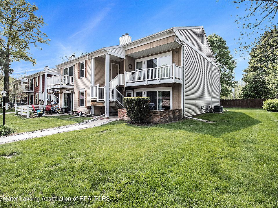 1st level 2 bedroom, 1.5 baths condo located in the heart of Okemos. Close to shopping, restaurants, bus line, and minutes from downtown Lansing, East Lansing, and MSU. Private end unit with it's own entry. Spacious living room. Eat-in dining space with galley kitchen and slider access to private front patio. Bedroom or optional office with nice sized closet and access to another patio over looking quiet green space on back side. Full bath features new toilet with tub. Primary 2nd bedroom includes it's own private half bath with large closet. Additional upgrades and features of unit include newer AC, newer windows and slider doors, covered carport, laundry in building next door, and storage locker in basement perfect for bikes. Must be owner occupied. Cats allowed but only service dogs permitted.