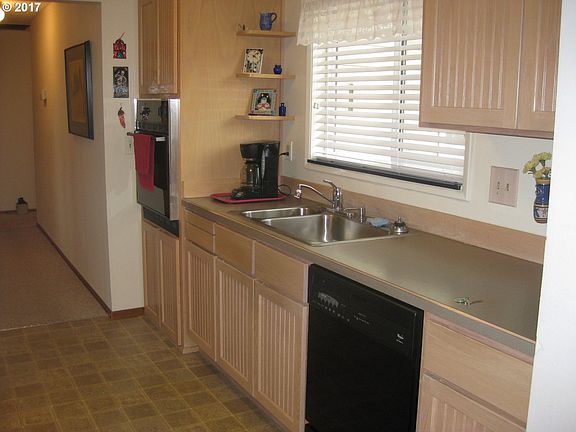 Beautiful one story home 2 bedroom 2 bath one bath with walk in shower. Nice size entry that opens to living, kitchen or bedroom wing.2 car garage with storage and laundry area.Custom built bookcases and either gas or wood fireplace in living room. Newer kitchen counters and appliances in kitchen. Siding doors to small but private patio. Sprinkler system.