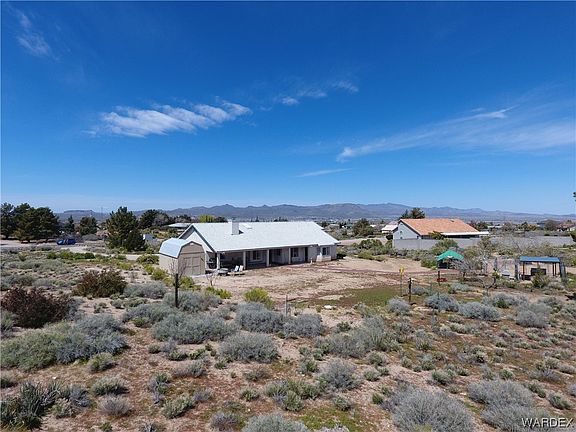 Welcome home to this spacious 4-bedroom home on 1.44 beautiful acres in Hualapai Foothill Estates--country living close to town. This beautiful home has been impeccably maintained. You'll find this open floorplan inviting with a desirable split-master and a fourth bedroom that could easily be a home office with all the built-in bookshelves. There's even an additional front sitting room that's currently being used as a music room. The matching stainless steel appliances and A/C unit are only 5 years old and the 10x20 storage unit out back only one year old. Outside, there's a driveway to pull through to the backyard, where there is an RV hookup with water, sewer, and 220. In the back yard there is a large fenced area with 2 kennels for dogs, and a hutch and pen for chickens. There are mature fruit trees with a watering system onsite that include Gala Apple, Asian Pear, and Cherry. Much of the land has been encouraged to produce native plants, so the need to water outside is limited while still having a lot of green growth to enjoy. This could also be a horse property if the future owners so choose. The included floorplan in the photos was generated using 3rd party software and is for layout and planning purposes only. The measurements may not be exact.