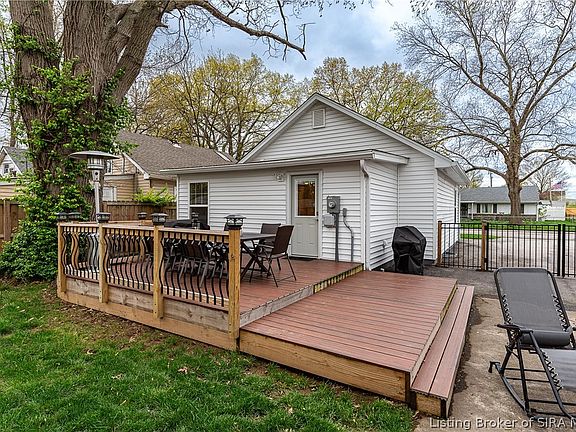 You will love this charming, move-in ready home located in the heart of New Albany.   The home was completely renovated in 2020 and features an open floor plan, tons of natural light, a spacious pantry, walk-in closet in the main bedroom, and a generous folding area in the laundry area.  The detached 2-car garage has room for plenty of storage, was built in 2020 and is accessible from the back yard area and from the alley.   The spacious backyard is an entertainers dream and features a fully fenced-in yard with gates, mature shade tree's, an expanded deck with composite flooring and lights, a newly added path to the garage, a concrete patio area, and is ready for summer grilling.     There is also a front porch to enjoy your morning coffee on while chatting with neighbors.    The property also features extra off-street parking out front and plenty of street parking.   ALL of the kitchen appliances, including the washer and dryer, the Honeywell security system, and the front door camera all stay with the home, making it truly ready for you!   Call your favorite Realtor today to schedule a showing.  Sq ft & rm sz approx.