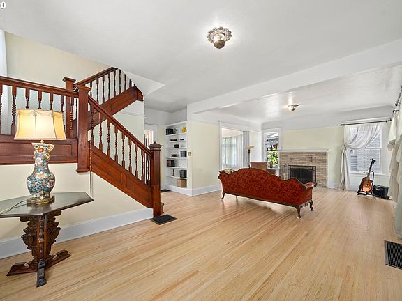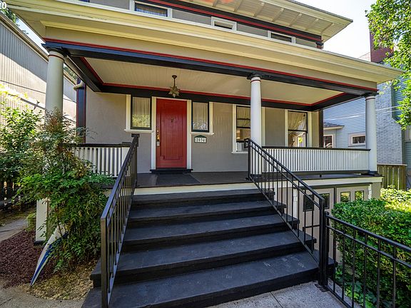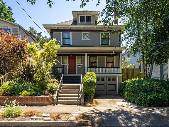 Revitalized Foursquare. Rare Owners Suite on Main. Refinished hardwoods. High ceilings. Charm intact: glass knobs, 5 panel doors, period fixtures. Modern open kitchen with skylights and windows galore. Four bedrooms up. Unfinished basement with exterior entrance. Unfinished top fourth level. Incredible potential. Lush garden in backyard. Incredible Kerns location a block from Screen Door, Heart Coffee, Pix. Close to dozens of highly rated shops and restaurants. Click Vtour for 3D walkthrough. [Home Energy Score = 3. HES Report at https://rpt.greenbuildingregistry.com/hes/OR10186107]