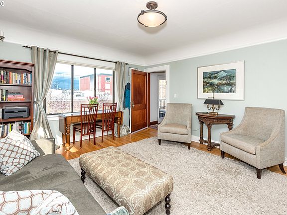 Light, bright condo spanning half the top floor to the north, west & south views. Remodeled kitchen w/ walnut counters, updated bath, refinished hardwood floors & electric fireplace. Tons of charm & immaculately maintained. Washer/dryer included, great closet space. Parking #9 in surface lot behind the building. Balcony at unit entry shared with one other condo. Two blocks to trendy Slabtown or NW 23rd Ave shopping district. New Season's, the Streetcar, coffee shops & restaurants all nearby.