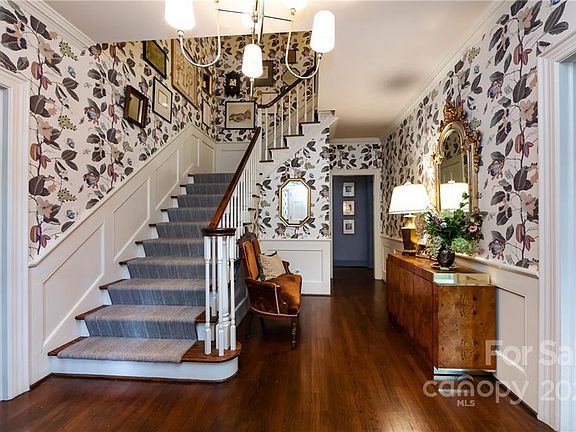 Classic Myers Park Georgian with over 4,300 square feet on .78 acres in a park like setting. High ceilings throughout with beautiful formal areas and cozy living areas. Formal living and dining are grand spaces, while front den and back family room are both large in size and welcoming and comfortable at the same time. Bright and happy kitchen was recently renovated. Family Room opens to covered back porch with a fireplace, overlooking a private back yard and koi pond. All 5 bedrooms are upstairs with the primary suite featuring a beautiful fireplace. Basement includes bonus space perfect for a playroom or workout room. Huge storage room as well with a half bath in the lower level. 1 car side load garage enters through the basement, and is currently used for storage.