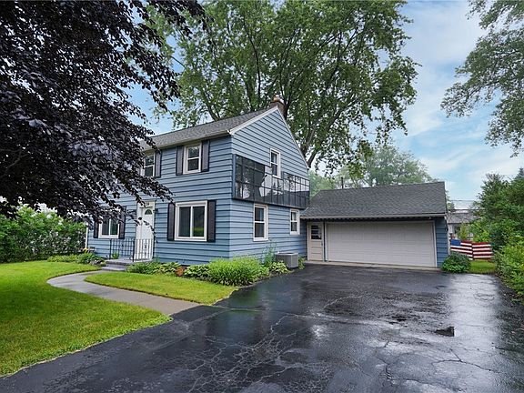 This classic center entrance colonial in Irondequoit is ready for you to just move in! With beautiful hardwoods and arched doorways, this home is loaded with charm. Here you'll enjoy the large living room to relax or entertain and a formal dining room adjacent to the spacious kitchen with lots of natural light throughout. An all season sunroom with brand new windows and flooring & a newly renovated half bath complete the first floor. Upstairs you'll find 3 generously sized bedrooms and a full bath with double vanity and a skylight! The finished basement with 2 separate rooms adds additional living space. The spacious, fully fenced backyard has a large patio as well as a deck. Brand new AC unit. Many new light fixtures and ceiling fans, new sink in kitchen. Greenlight. Don't miss this opportunity! Showings begin Thursday 6/13/24 @ 9am. Negotiations to begin Tuesday 6/18/24 @ 10am.
