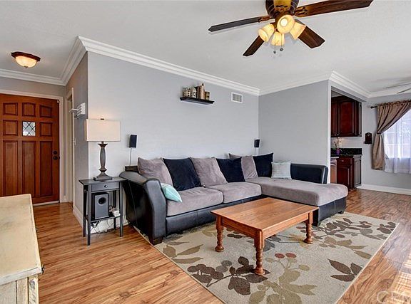 HIGHLY UPGRADED single story pool home!!! Shows like a model! Open floor plan with 1,228 sf of living space. This 3 bedroom plus office/den (could be 4th bedroom), 2 bath home has it ALL!!! Newer custom kitchen with beautiful wood cabinets, granite counter tops, stainless steel appliances, gas range, & recessed lighting. 2 full baths BOTH upgraded. Newer interior doors with bronze hinges and knobs, gorgeous laminate flooring, decorator paint colors & accents, scraped ceilings, large baseboards, and crown molding. Large lot (7,405sf) boasts a sparkling pool which includes a diving board and safety fence, built-in BBQ with sink & fridge, and grassy area for all your entertaining needs. The Solar panels offer reduced electric bills! Gated RV access for all your toys!! Central A/C and Heat and Security System. Conveniently located to Schools, Mile Square Park, & South Coast Plaza. Don't miss this great opportunity!