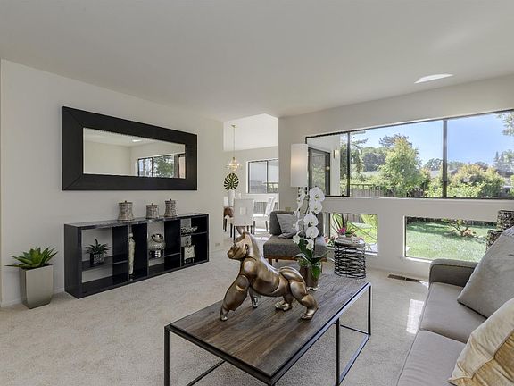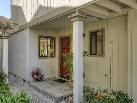Desirable town home end-unit w/open floor plan & huge backyard. Formal entry w/new wood flooring. Inviting living room features carpet flooring, wood burning fireplace & large windows overlooking the newly landscaped backyard. Separate dining area w/lots of natural light, vaulted ceiling & glass slider to backyard. Kitchen features wood cabinets, new ss appliances including an electric range, dishwasher, microwave & refrigerator. Half bath on the main floor. Bonus space on 2nd floor, perfect for an office space or library. Large master suite w/ wall to wall closets & a glass slider to the sunny balcony w/mature tree view. Master bath has a shower over tub w/a garden window & tile flooring plus a separate dressing area & closet w/mirrored doors Spacious 2nd & 3rd bedrooms w/lots of natural light & ceiling fans. 2nd full bath w/ a shower over tub. Inside laundry w/ full size W/D. Huge & sunny backyard w/ patio, lush landscaping & mature tree. Attached 2 car garage plus extra storage.