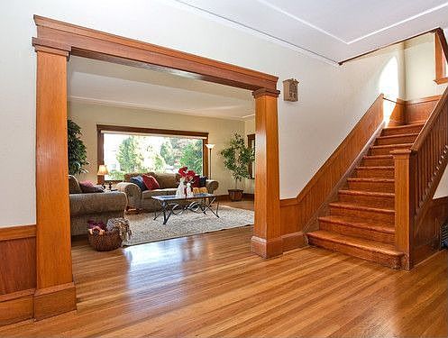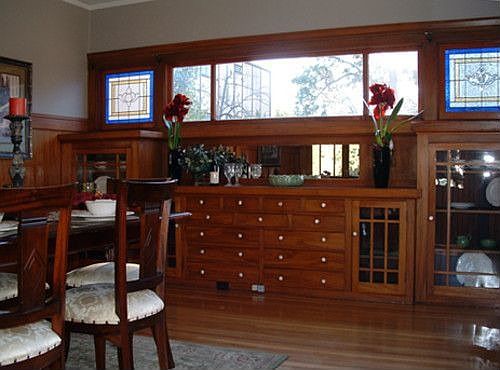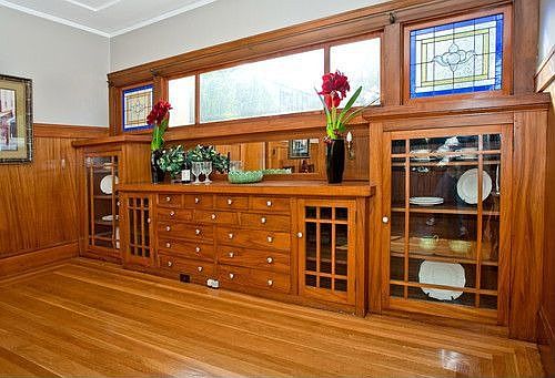This incredible home, is an example of popular architecture dated mid 1890s to the late 1930s. A reaction to the ornate and mass produced elements of the Victorian and other Revival styles popular throughout the last half of the 19th century, these homes were of simple design and incorporated handcrafted "honest" woodwork and combined elements of the Prairie School and the Craftsman styles. It is also sometimes described as Transitional.