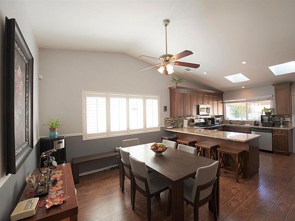Move in ready & RV Parking! Feast your eyes on this gorgeous 3BR/2BA single level situated in Northeast Escondido. If a great eat-in kitchen is your thing, don't miss this one with it's spacious counter bar and dining area. Fabulous floorplan with formal entry way, living area with soaring ceilings, canned lighting, fireplace and laminate flooring. The oversized eat in kitchen is light and bright offering tons of upgraded cabinets, granite counter tops, spacious bar, built in microwave, gas stove, refrigerator & large window and door out to backyard to serve your guests at the concrete patio table and chairs. The bathrooms have been totally upgraded with tile floors and showers, granite countertops, wainscoted walls and more. The private backyard is perfect for entertaining with two patio areas and enough space for a pool. Other upgrades include 6 panel doors, wood shutters and blinds, ceiling fans in every bedroom, wainscoated walls Every detail has been given attention in this house! Great location! Don't miss it!