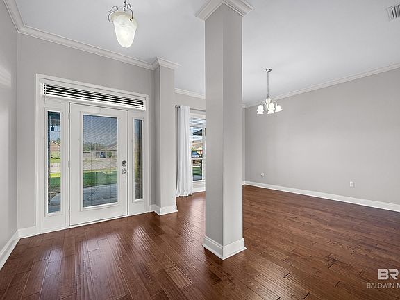 This beautifully upgraded 4-bedroom, 3-bath, single-story home in Foley’s Parish Lakes subdivision offers nearly 3,000 sq ft of open, light-filled living space with modern finishes and smart home features. The gourmet kitchen boasts a large center island, walk-in pantry, granite countertops, professionally painted cabinetry with updated hardware, and above/below-cabinet lighting. The spacious primary suite includes dual walk-in closets, a soaking tub, and a separate walk-in shower. Additional upgrades include a mini-split A/C in the side-entry garage, a fortified roof, storm shutters, an AC with wave-ionized purifier, updated plumbing, new water heater, and a smart automation system controlling garage doors, lighting, thermostat, and security. Outdoors, the fenced and landscaped backyard overlooks Parish Lakes, while the extended parking area with recessed tie-downs for RVs or trailers. A storage shed, garden space, and prime location just minutes from Gulf Coast beaches, shopping, dining, and entertainment complete this move-in-ready coastal retreat. This property in a strategic location near top Gulf Coast attractions, it perfectly balances peaceful retreat and easy access to local amenities. Parish Lakes has easy access to OWA, Tanger Outlets, Beach Express and the Wharf. Less than 20 minutes to the white sandy beaches of Gulf Shores and Orange Beach. Buyer and/or Buyer's agent to verify all information deemed important during due diligence. Buyer to verify all information during due diligence.