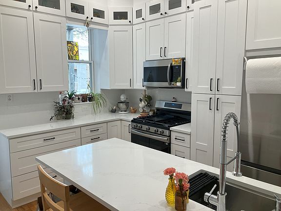 WATER, TRASH & FREE LAUNDRY ARE INCLUDED IN THE RENT PRICE! Brand new kitchen (2025) and updated bathroom (2022)! CENTRAL AIR installed in 2020!; This bright and sunny vintage 2 bedroom in the middle of Ukrainian Village has everything a renter could ask for. Updated stainless steel appliances, hardwood floors throughout, huge windows and tons of character and freshly painted. Off the kitchen is the primary bedroom with room for a queen-sized bed and smaller dresser. From there you pass the bathroom in the entry hallway with built-in shelving into the living room. Off of the dining room is the second bedroom which can fit a full-sized bed. The very large living room is cable-ready and can easily fit a sectional couch, and a bonus den completes the layout. The renter has a number of ways to set up the living space with multiple bedroom, living room, and office combinations possible. A lovely deck off the kitchen provides space for outdoor living. This vintage Ukrainian Village 2B/1Ba apartment was just updated with a BRAND NEW studio41 kitchen and is spectacular, with white shaker cabinets, stainless steel appliances and quartz countertops. One bedroom fits a queen sized bed, and the other room is smaller and typically fits a full sized bed. There is also a bonus room that can be used as an office but is also on the smaller side. Super close to Damen/Chicago intersection, less than 5 minute walk to Marianos. About 5 mins by car to the United Center. Chicago/Damen bus lines also less than 5 minute walk. 10-15 minute walk to Division bars. 5 minute drive to 6 corners in Wicker Park. Damen Tavern 2 minute walk away. Amazing restaurants within walking distance include Fatso's, Tumans, Parsons, Yuzu, Forbidden Root, Kasia's Deli, West Town Bakery, Cleo's, Barcocina, Bacci Pizza, Sportsmans, Koko's Mediterranean Grill, Beatnik, Split Rail and so many more This location has it all! Available 7/1. $500 one-time pet fee per dog. No cats.