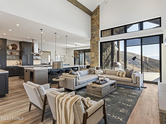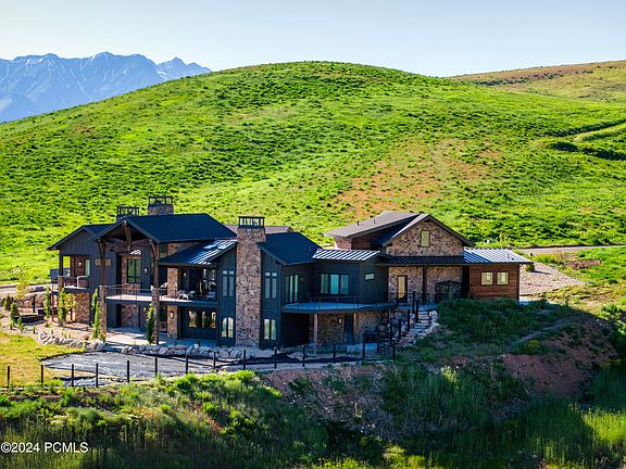 Mountain living at its finest! Every detail of this incredible 7,430 sq. ft. estate has been thoughtfully considered. Sitting on over an acre in the new Hidden Hollow Ranch neighborhood and surrounded by sweeping mountain views, the porte cochere creates a grand first impression with its timber construction. Features include a warm wood and stone exterior, an oversized three-car garage with an electric car charger, a dog wash, a home generator, and a heated driveway. The grounds of the property are elegantly landscaped, featuring a harmonious blend of softscaping and hardscaping to create a gentle aesthetic. The main level boasts an open-concept kitchen, living, and dining area for seamless entertaining. Take note of the high-end LVP flooring, vaulted ceilings, skylights, walls of windows, as well as stone and timber accents. The great room's floor-to-ceiling stone fireplace is an elegant focal point for gatherings. The gourmet kitchen is a dream come true with two islands, high-end appliances, a hidden pantry, and quartz countertops. Massive sliding doors lead out to one of the home's four decks for more incredible views. Right off the kitchen, the family room also features a floor-to-ceiling stone fireplace with built-in window seating on both sides, a wet bar, and its own entrance to the deck. The daylight walk-out basement is ready and waiting for future game nights or guests. There is even a golf simulator room, bunk room, and bathroom. Adventure awaits - 20 minutes away from the new Wasatch Peaks Ranch development and 25 minutes from Snowbasin for world-class skiing in the winter, mountain biking, and hiking in the summer. This is the perfect home for lake day fun with Pineview, East Canyon, and Echo Reservoirs within a 30 minute drive. Powder Mountain and Salt Lake City International Airport are all within an hour's drive. Enjoy quiet country living with all the luxuries you could hope for, it's truly the best of both worlds.