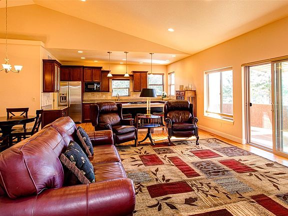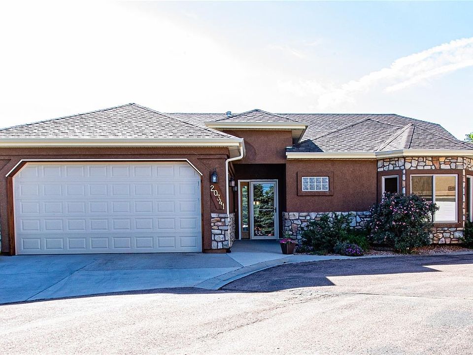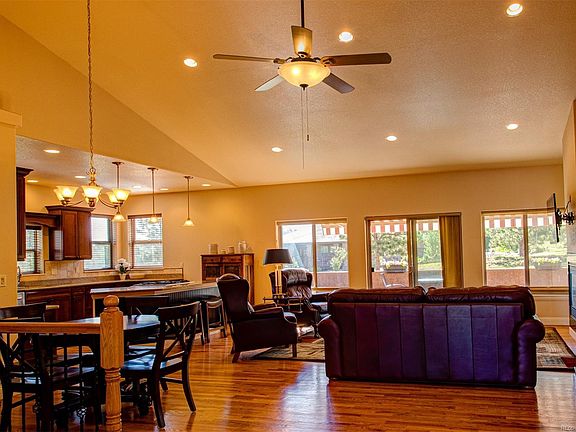 Easy on/off I 25/Monument.Check this immaculate stucco ranch just 5 minutes from County Line exit.Worlds away in quiet,secluded Pine Hills nestled in trees and green space.Elegant,but simple, Colorado Contemporary Country styling.Spacious Great Room, gourmet galley kitchen has casual bar seating,desk.Beautiful hardwood in living area, granite counters,custom cabinetry.Main level Master and laundry. NO steps to garage,deck or front entry.From living rm.enjoy huge deck with awning facing east to enjoy Mt.Baldy view and BBQ .Without Gap delays,commute time to Denver Tech Center is 30 minutes. County Line is high on the snow removal priority list. Freshly painted throughout, Vaulted ceilings in main level. Main level laundry with extra storage .8 ft ceilings in huge family room in basement, plus 2 large bedrooms, full bath with brand new tub and shower surround. Storage room for all the extras. Home is "White Glove" clean and provides quick occupancy.