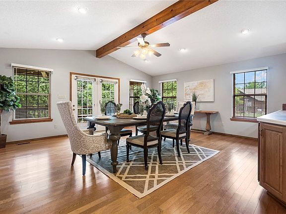Nestled on over 2 acres, this beautiful property offers the ideal blend of privacy and convenience, just over a mile from Beaver Lake and close to town. Upon entering, you will discover a large living room complete with a wood ceiling beam and fireplace. Flowing seamlessly from the living room is the eat-in kitchen, boasting newly painted cabinets, a wet bar, and an abundance of counter space. The spacious dining room features functional built-ins, along with direct access to the expansive backyard and deck. The primary suite is a sanctuary with tall ceilings and a private deck with a hot tub connected to the en-suite bathroom. An additional bedroom, previously used as a media room, can be divided into 2 bedrooms or used as an office and flex space. For the hobbyist, the 24x36 enclosed shop with a 17x19 lean-to shelter is a standout feature. The attached tandem 4-car garage ensures ample storage space. With a brand new roof installed in late August 2024, this property is move-in ready with endless possibilities.