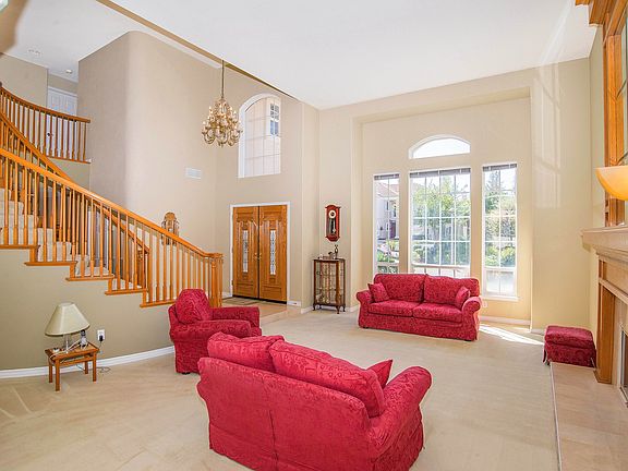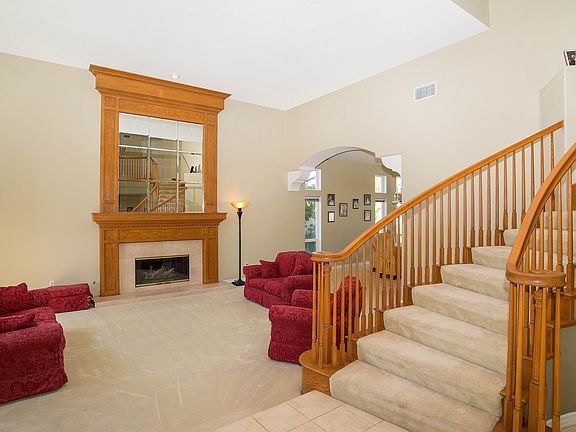 Welcome home to this beautiful East Lake Village estate. Double doors enter into an elegant foyer w/marble tiled floors, soaring ceilings, a beautiful curved staircase, large formal living room w/a beautiful marble fireplace featuring custom beveled mirrors extending from the wood mantle to the cathedral ceilings. Large formal dining room boasts a wall of floor to ceiling windows & sliding glass doors w/a backyard view. The bright, open gourmet kitchen has granite counters & center island, a gas 5 burner stove & high end built-in appliances including the refrigerator. A casual dining area opens to a family great room w/sliding doors to backyard & a stone fireplace - all w/a backyard view. Downstairs powder room, separate laundry room w/entry to the 3 car garage. The icing on the cake is the main floor 4th Bedroom & private bath - Perfect for Guests/In-Laws. Upstairs features a gigantic master suite complete w/setting area, fireplace & tons of closet space. There are 2 secondary bedrooms that share a full bath PLUS a huge bonus room (possible 5th bedroom) w/a 4th fireplace, built-ins, wet bar & room for pool table, office, etc. Gated RV parking. Enjoy Assoc Pools, Spas, Clubhouse, Basketball, Gym & Boating/Fishing on 15-Acre Lake - NO MELLO ROOS