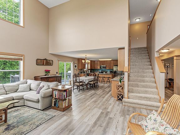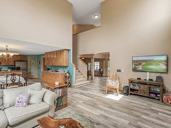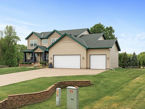 Welcome to your dream home in Elk River! Nestled on an expansive .76-acre lot, this two-story residence exudes both elegance and comfort. As you approach, the lush greenery and manicured landscaping greet you, hinting at the beauty that lies within. Step inside, and you're immediately greeted by the spacious living room adorned with soaring 20-foot ceilings! Venture upstairs to discover the serene primary suite, complete with a luxurious ensuite bathroom and walk-in closet, providing a peaceful retreat at the end of the day. A secondary suite on the top floor provides even more space. On the main floor, you'll find another primary suite with ensuite bathroom; which means your primary bedroom and living facilities are available on the main level. Descend to the recently finished basement, where endless possibilities await. Whether you envision a home theater, game room, or fitness center, this versatile space offers endless opportunities for customization to suit your lifestyle.